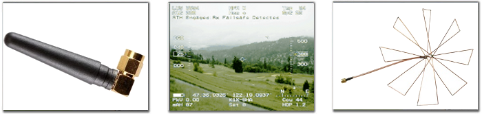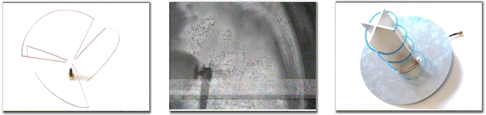 בתמונה מעל מימין Helical directional CP Antenna, במרכז דוגמה להפרעת ריבוי נתיבים ומשמאל Cloverleaf Omnidirectional CP antenna.